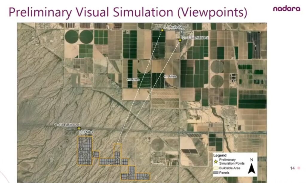 In order to commence construction of the project, Nadara is seeking approval to amend the land use designation from very low density residential to green energy production. The actual project site area was formerly a target bombing range during World War II which underwent federal and environmental review.