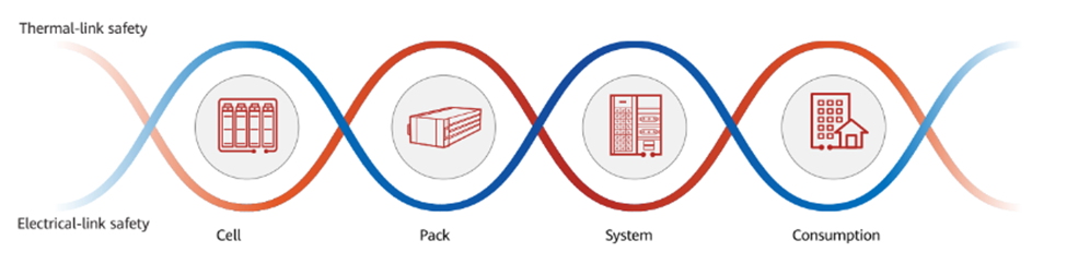 Instead of incorporating one or two common safety features, Huawei’s ESS features a holistic cell to consumption (C2C) safety design, making the system safe for use from its smallest unit all the way to its entirety. The C2C system also boasts a dual architecture, focusing on both electrical and thermal link safety.