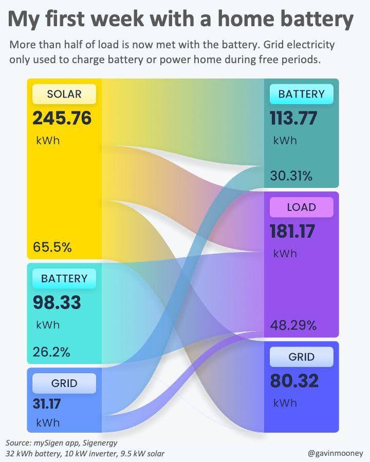 Mooney chose a SigenStor system, attracted to the sense that Sigenergy is a young, innovative company “shaking up the market,” as he puts it. “Their app has this really cool Sankey chart that I really enjoy looking at,” Mooney adds. His purchase comes at a time when Australia is seeing unprecedented growth in residential battery storage, with more than 1,000 installations per day nationwide since July, when the Cheaper Home Batteries subsidy program came into effect.
