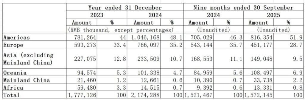 Internationalisation is another defining feature of PowerOak’s business model. Overseas revenue has accounted for over 97% of its total revenue throughout the reporting period, standing at 98.8% in 2023, 99.4% in 2024 and 97.9% in the first three quarters of 2025. Europe and the Americas are its primary markets, making up 48.1% and 35.2% of its 2024 revenue respectively.
