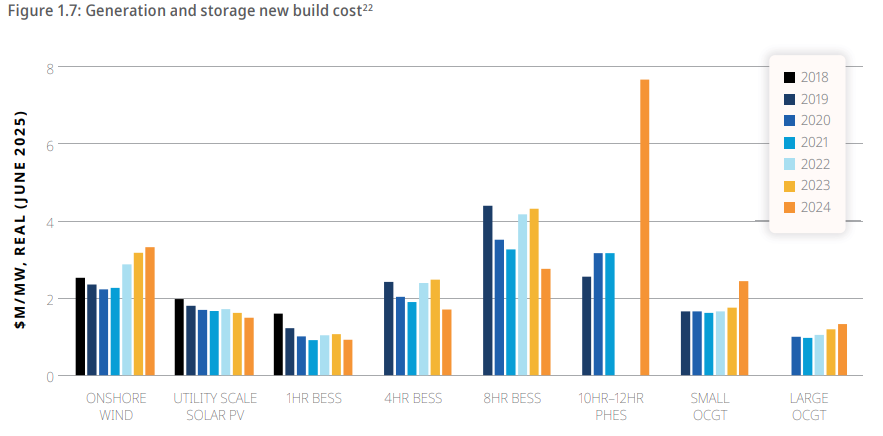 The CSIRO attributes these changes to supply chain constraints following COVID-19, which increased freight and raw material costs. While large-scale solar and battery storage costs have declined by more than 20% since 2020, cost increases have occurred across other major generation technologies and transmission infrastructure.
