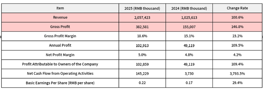 The company’s full-year 2025 revenue breached the RMB2 billion milestone, hitting RMB2.057 billion—doubling the RMB1.026 billion reported in 2024. From 2022 to 2025, revenue catapulted from RMB142 million to RMB2.057 billion, representing nearly 15-fold compound growth over four years, establishing Guoxia as one of the fastest-growing newly listed companies in Hong Kong over the past three years.