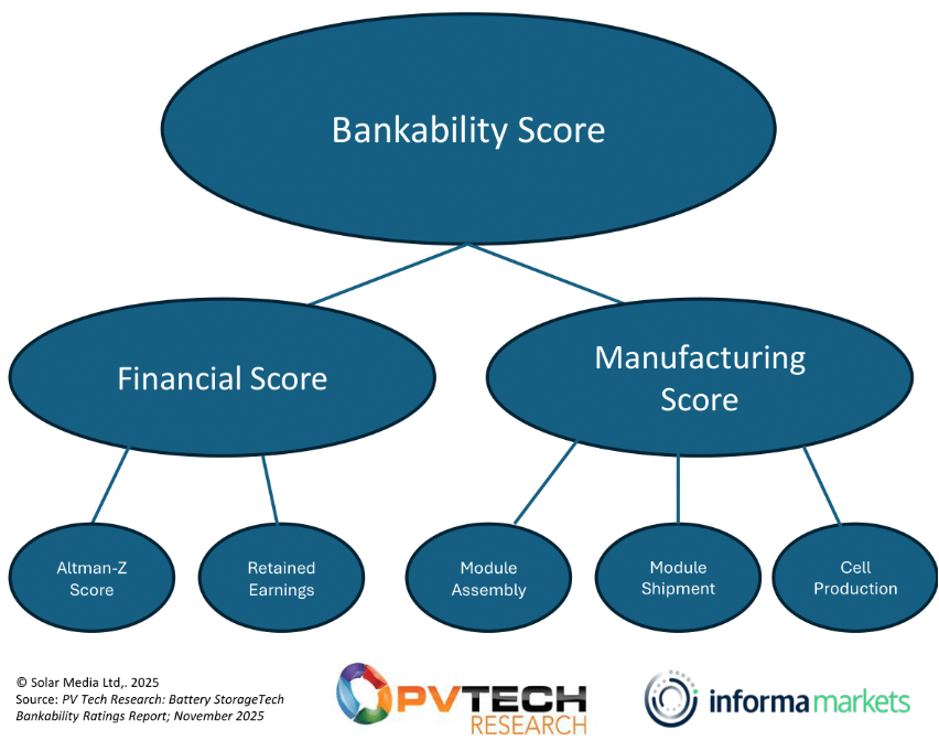 Figure 1: The Bankability score of each company is based on financial and manufacturing data, each calculated by benchmarking all the companies every quarter.