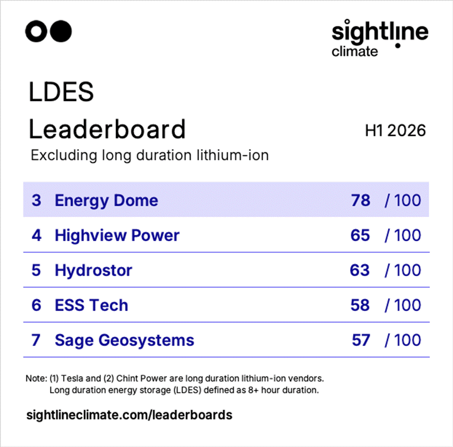 Lithium-ion companies have come out as the top-rated suppliers on a new long-duration energy storage (LDES) leaderboard, while CO2 Battery company Energy Dome is the highest non-lithium company.