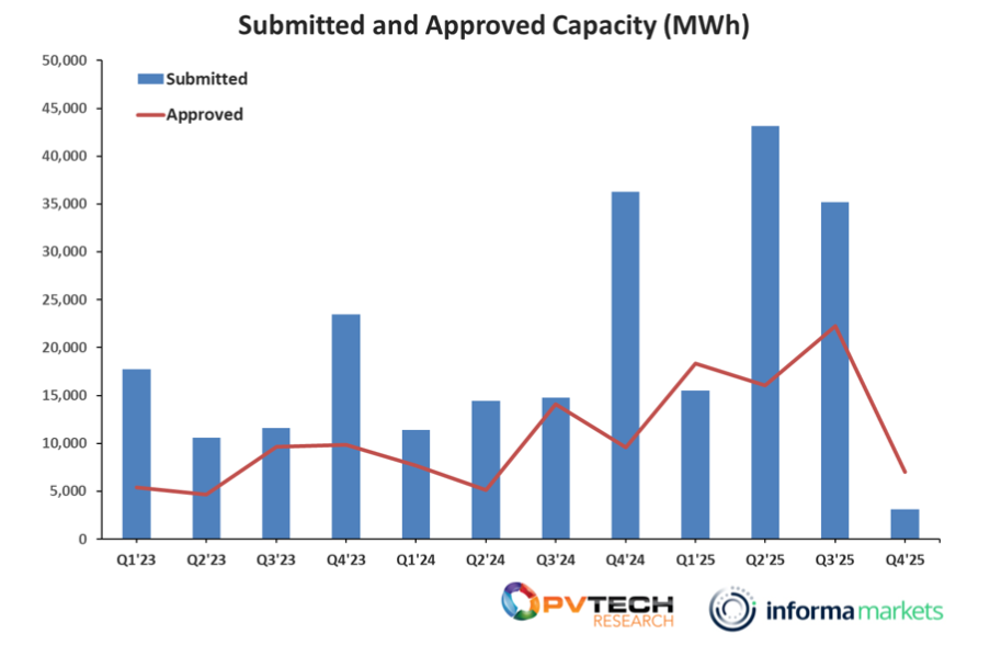 Even with the fall in applications in Q4 there is still a robust interest in projects, during 2025 over 75 GWh of pre-applications were submitted in 2025 and over 37 GWh do not have a corresponding full application. Looking at all the projects submitted for an application during the year, including pre-applications, the UK pipeline grew 34% from the year prior.