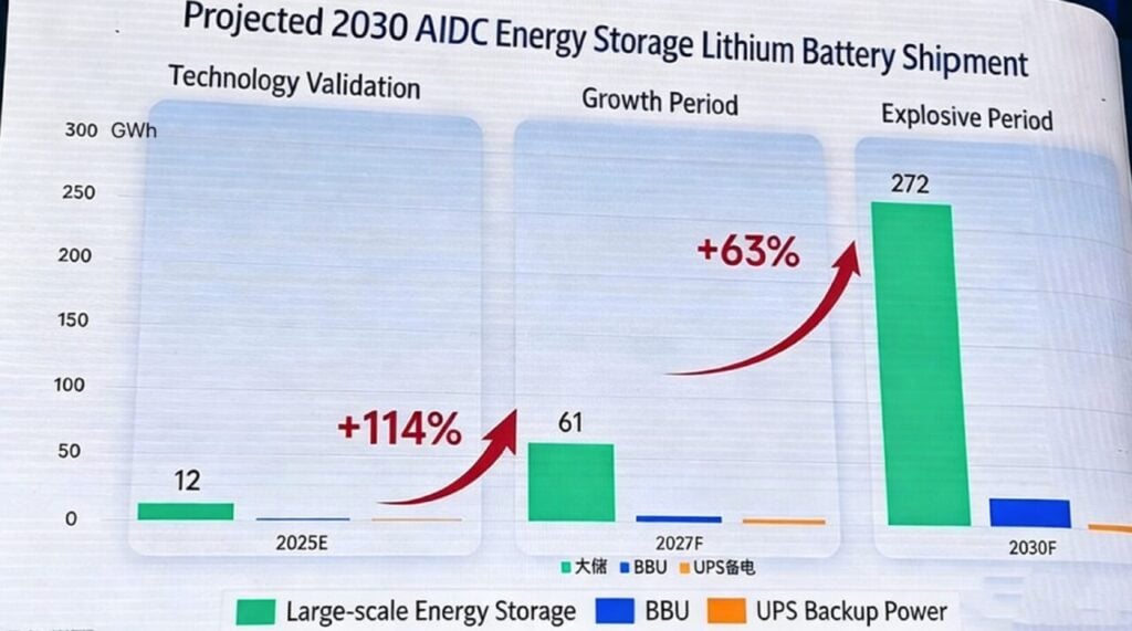 A December 2025 report from GGII (High-Tech Industry Research Institute) underscores the market’s enormous potential: The AIDC energy storage lithium-ion battery market will undergo a three-phase evolution-technology validation, growth, and explosive expansion.