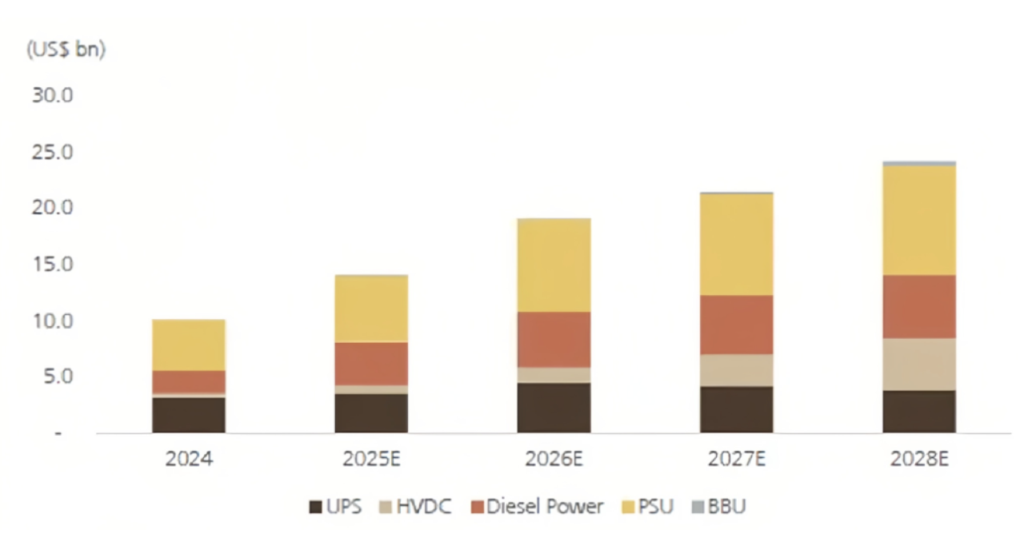 UBS Securities’ latest analysis also indicates that the rapid advancement of AI and the exponential growth in machine learning are driving fundamental changes in power supply and distribution systems. It forecasts that the potential market size of global AI data centre (AIDC) power supply systems will hit US$24 billion by 2028.